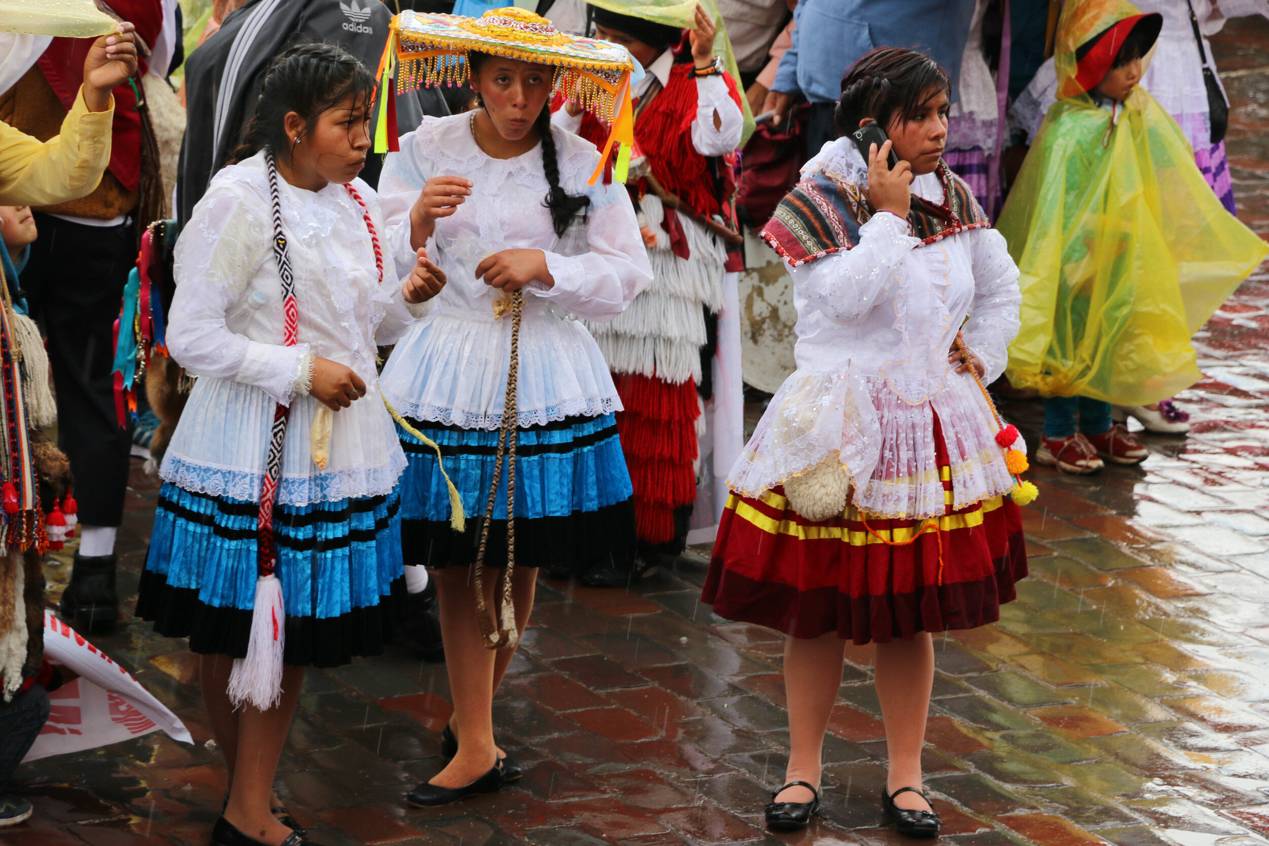 Even when the rains came, and it poured—people danced. They huddled under ponchos and sang and played flutes. I have no idea what they were celebrating. I tried asking but my Spanish is just not good enough to understand. I was able to answer a few questions folks asked of me like where I was from. And though everyone was friendly I was aware of my rubio (blond) hair and my whiteness.